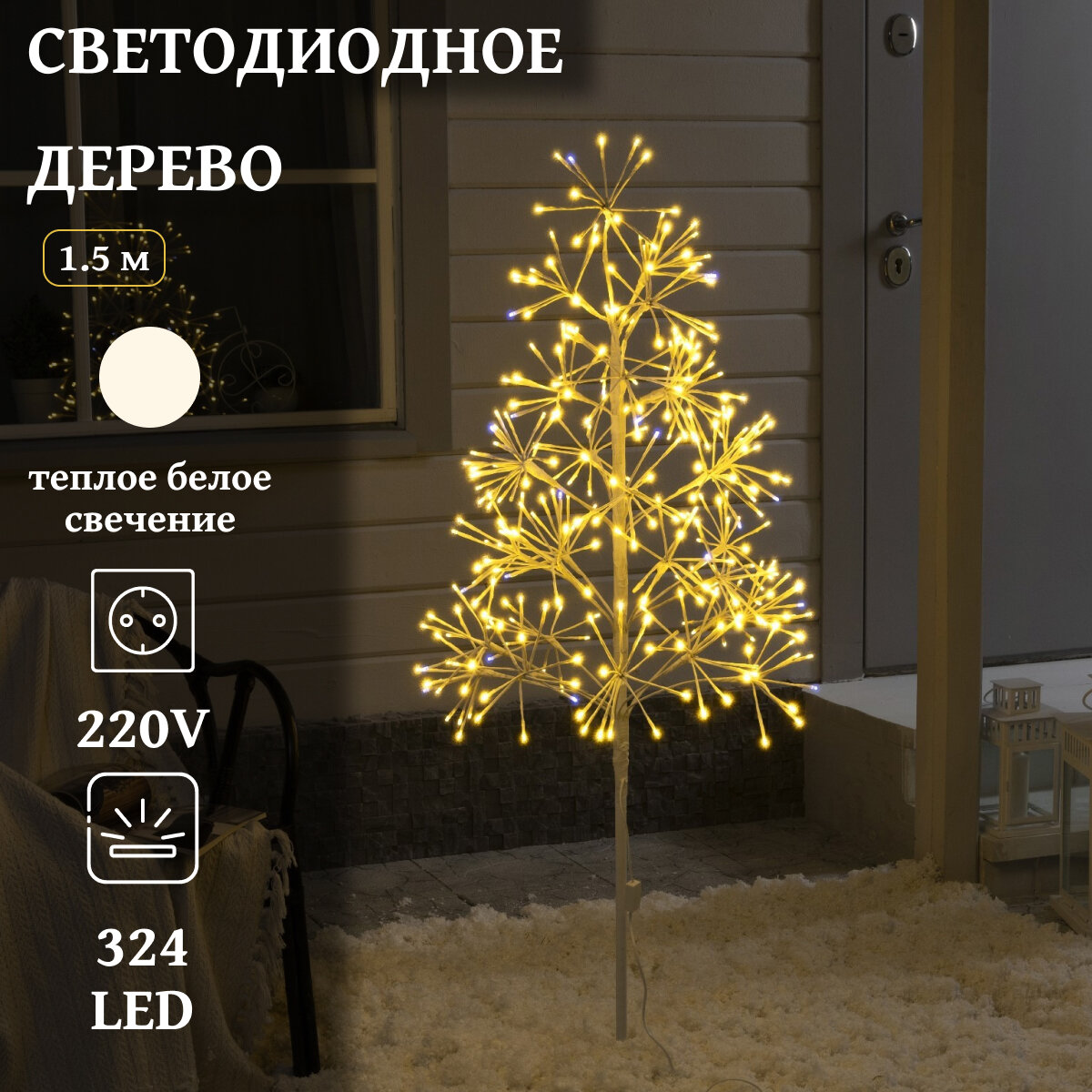 Купить Светодиодное дерево «Ёлка» 1.5 м, 324 LED, мерцание, 220 В, свечение тёплое белое