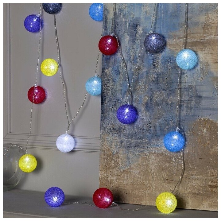 Купить Luazon Lighting Гирлянда "Нить" 5 м с насадками "Клубки цветные", IP20, прозрачная нить, 20 LED, свечение белое, фиксинг, 220 В