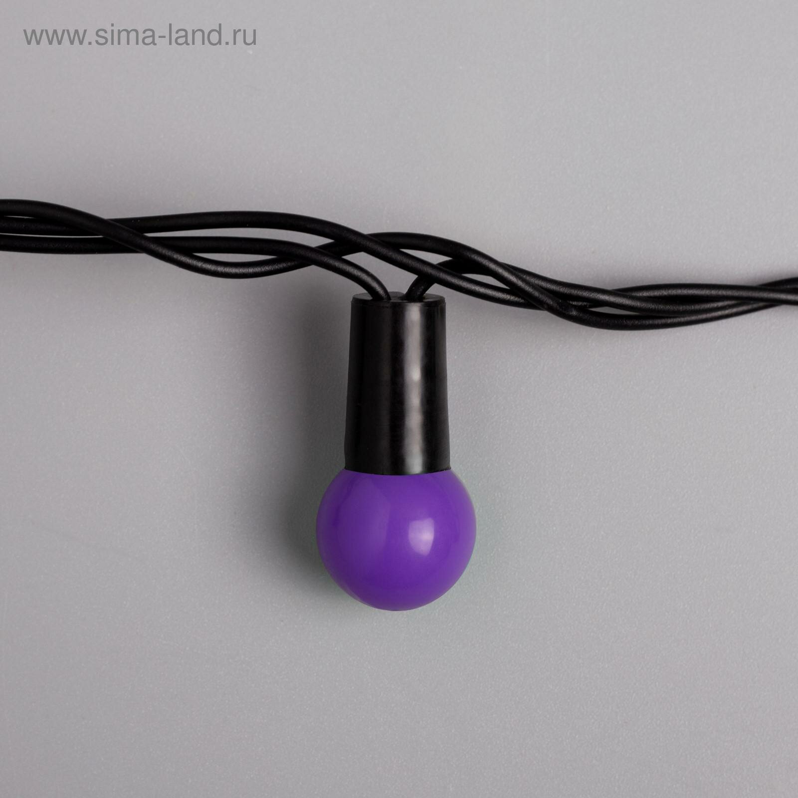 Уличные гирлянды Luazon Lighting Гирлянда «Нить» 20 м с насадками «Шарики 1.5 см», IP44, тёмная нить, 200 LED, свечение фиолетовое, 8 режимов, 220 В