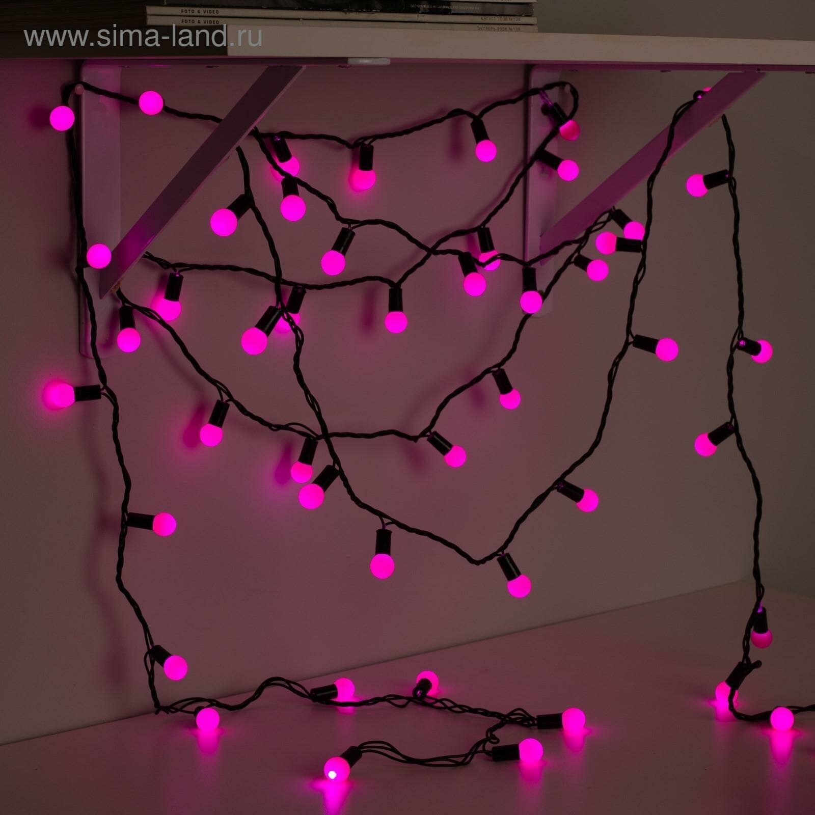 Купить Гирлянда «Нить» 20 м с насадками «Шарики 1.5 см», IP44, тёмная нить, 200 LED, свечение розовое, 8 режимов, 220 В