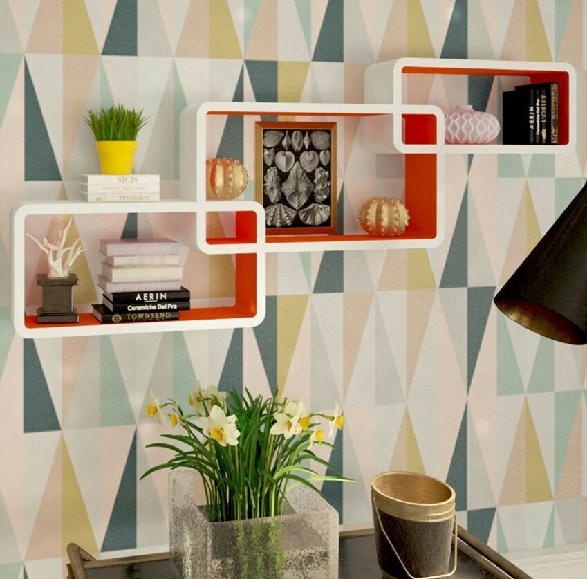 QWERTY Комплект полок "Нью-Йорк" цвет белый/оранжевый, 44х24х10см; 40х20х10см; 36х16х10см; толщина 1,5см интересное: