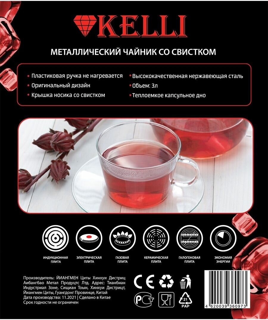 Чайник для плиты Kelli KL-4511 со свистком / 3 л / нержавеющая сталь интересное: