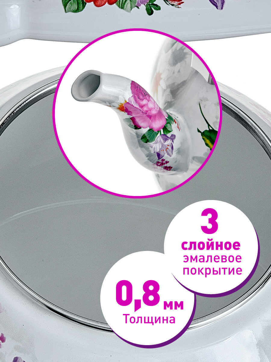 EM-501X1/48 Чайник эмалированный с керамической ручкой "Цветочный букет" 5,0л интересное: