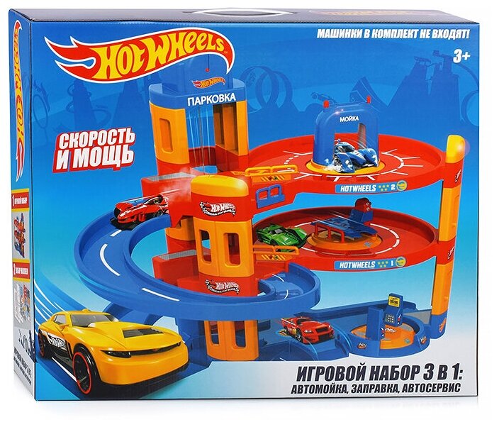 Игровой набор парковка "ХОТ вилс 3 в 1: автомойка, заправка, автосервис" 50х59х13,5 см.