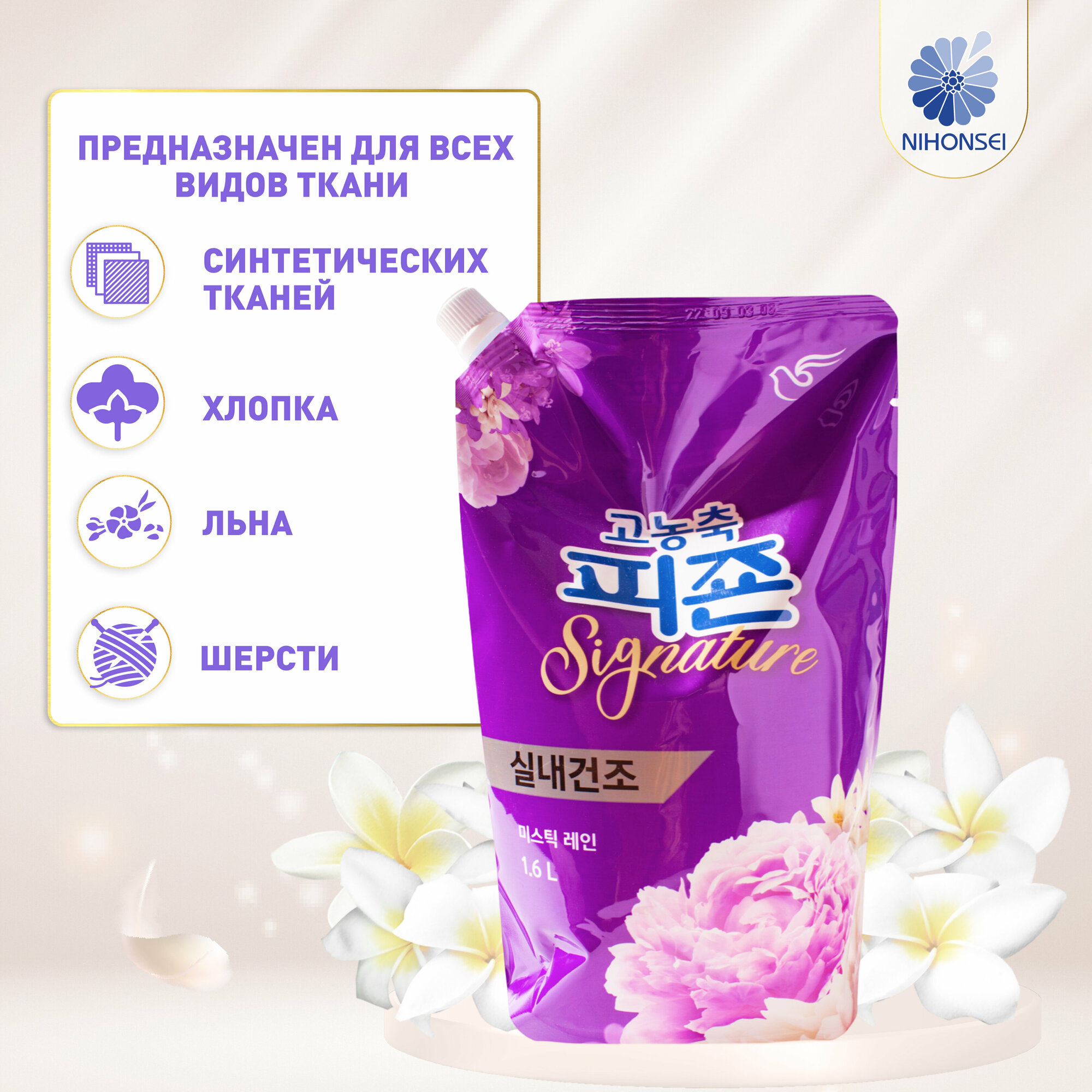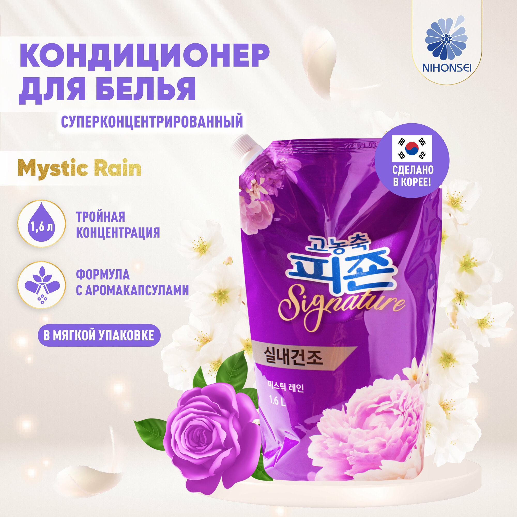 PIGEON RICH PERFUME (Mystic rain) Концентрированный кондиционер для белья с ароматом цветов яблони, персика, амбры и мускуса 1000мл