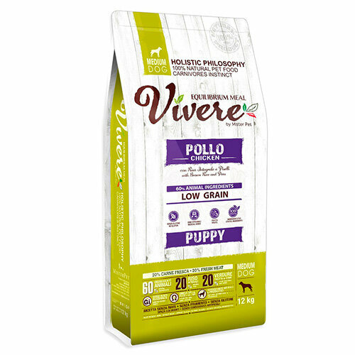 Vivere корм для щенков средних пород, низкозерновой, курица 12 кг