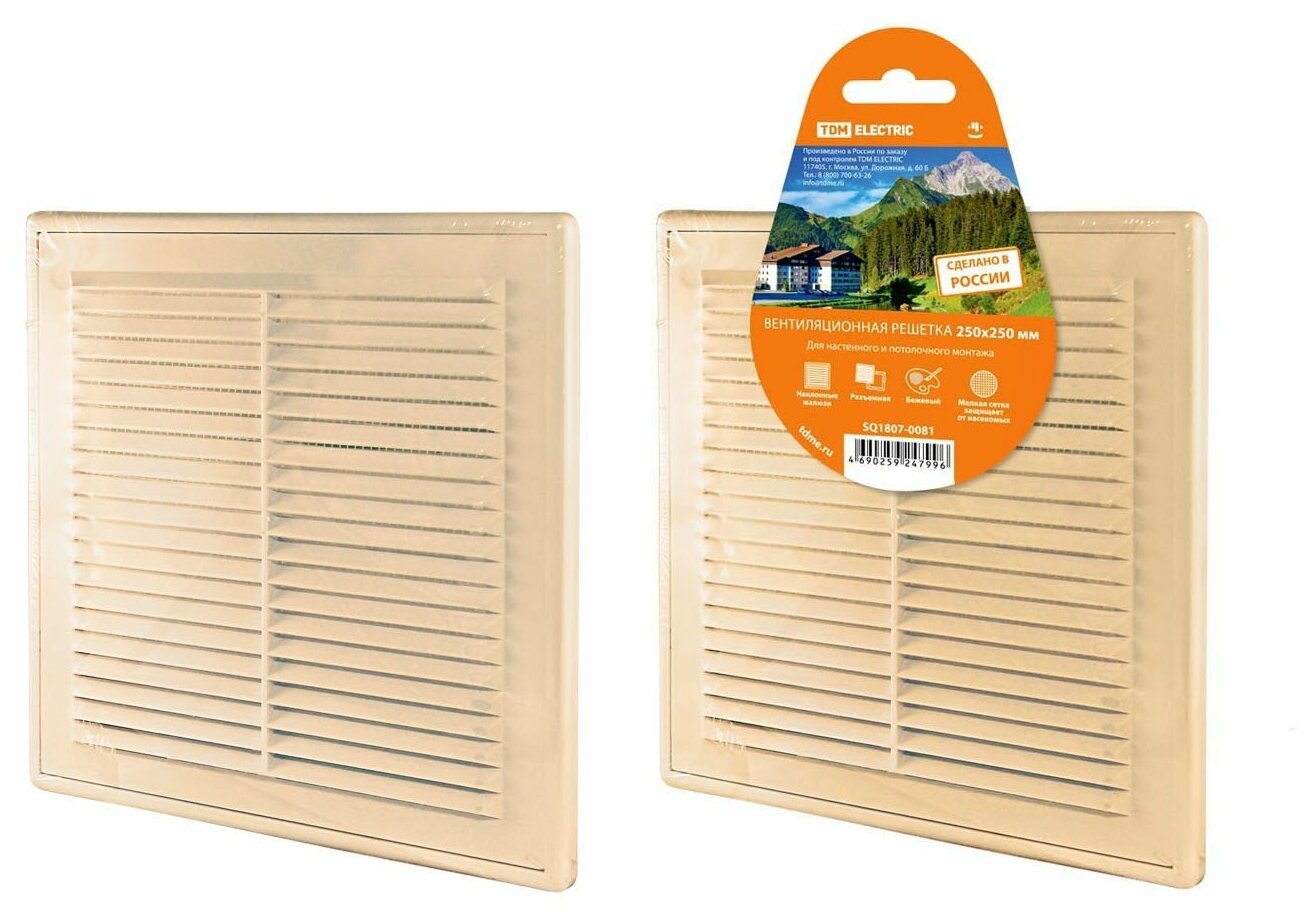 TDM вент. решетка разъемная 250х250мм с москитной сеткой бежевый (10!) (РФ) SQ1807-0081, 1 шт.