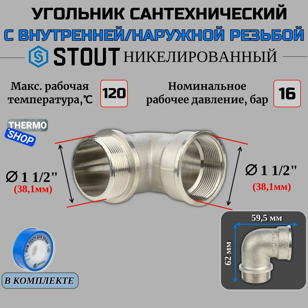 Угольник с упором НВ никелированный 1"1/2 STOUT SFT-0016-000112