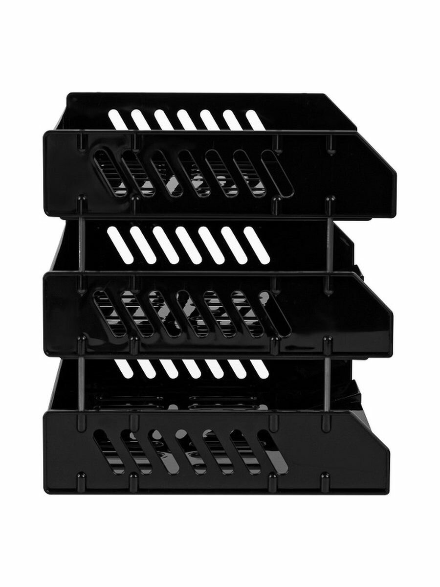 Купить Лоток для бумаг горизонтальный СТАММ "Сити", набор 3шт., на мет. стержнях, широкая загрузка, черный