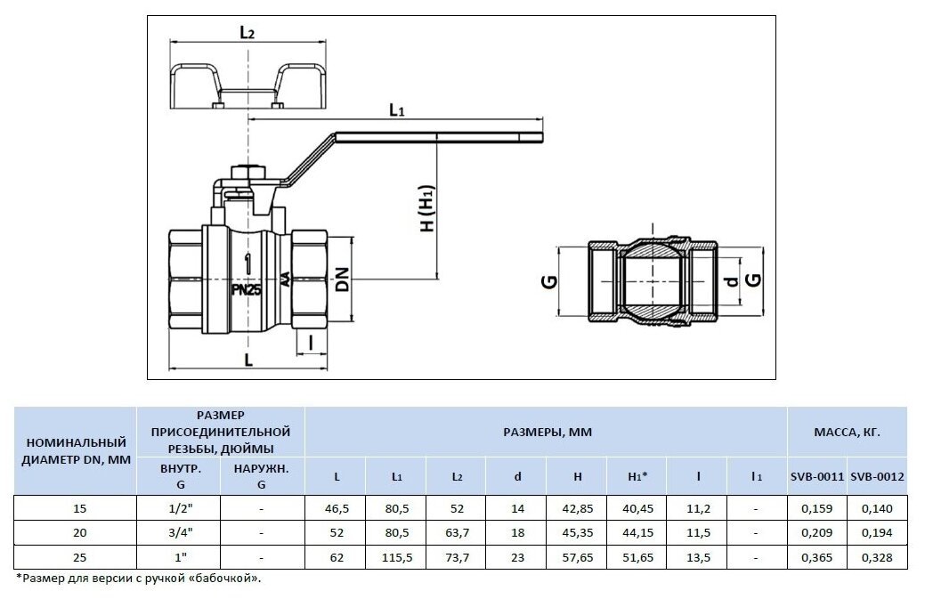 SVB-0012-000025 STOUT Кран шаровой стандартнопроходной, ВР/ВР, ручка бабочка 1"