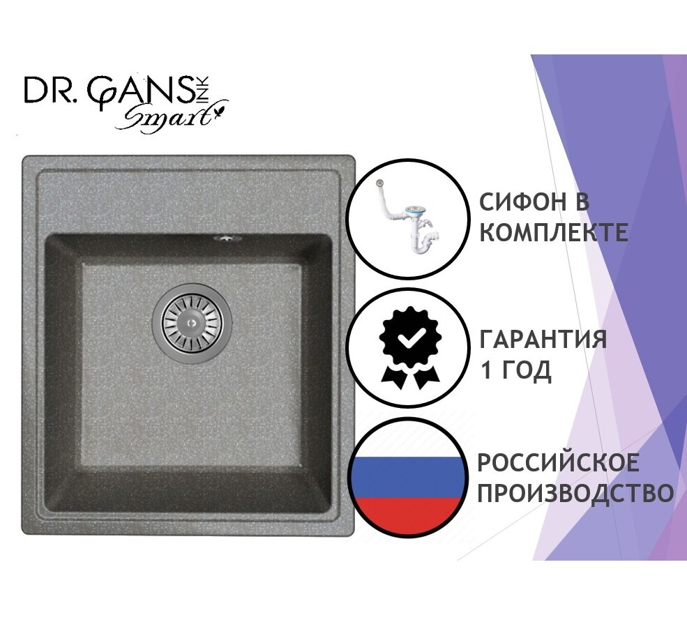Мойка для кухни врезная каменная Dr. Gans Smart ОЛИВИЯ-420, цвет серый, прямоугольная, 420х480х197 мм / раковина для кухни