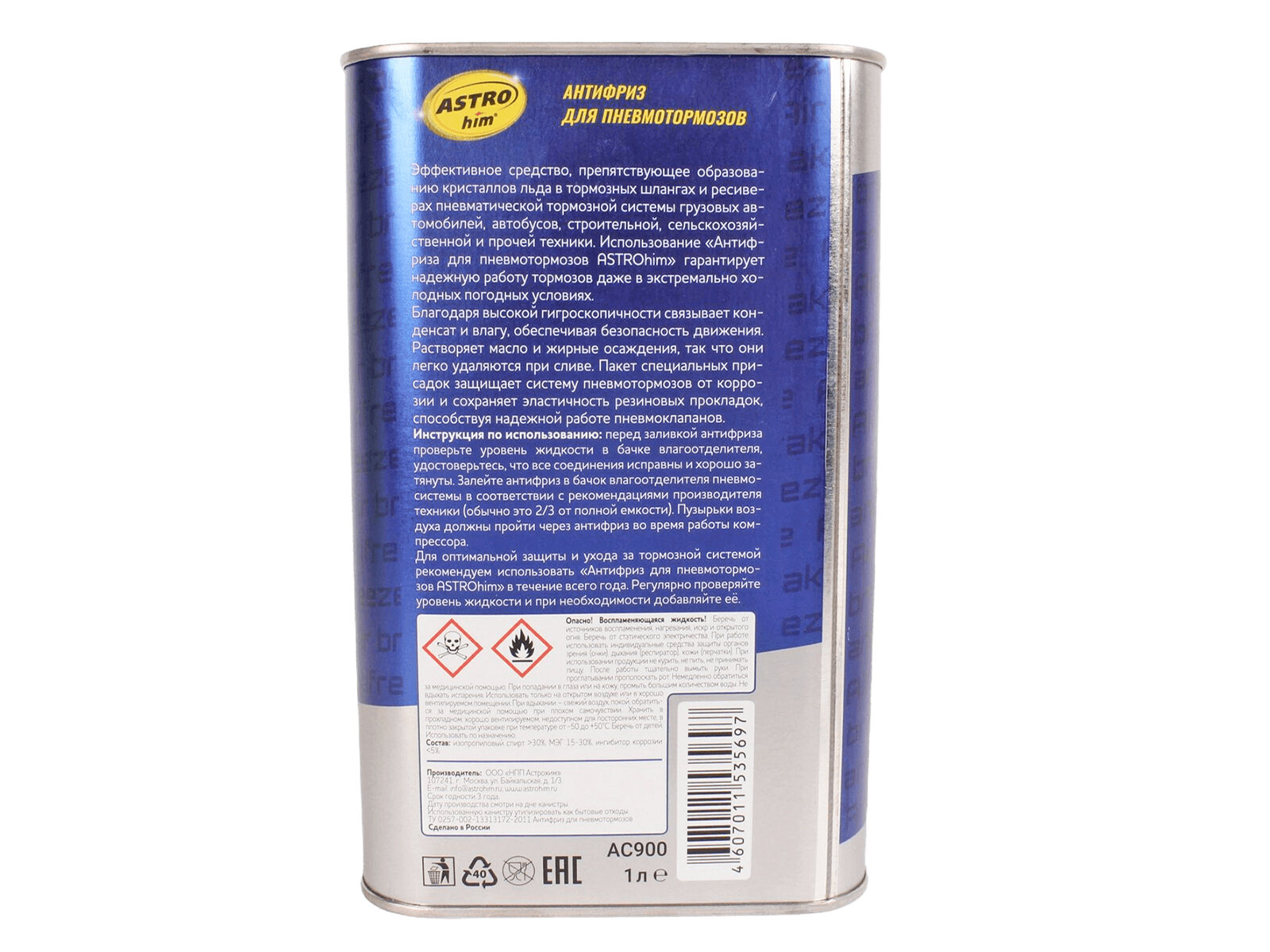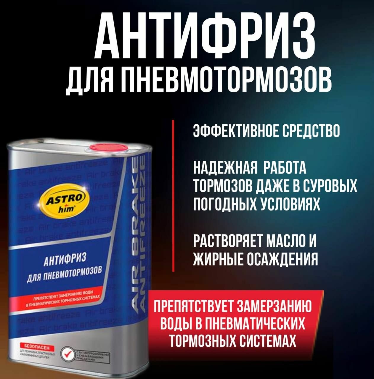 Антифриз Для Пневмотормозов, Astrohim Жестяная Канистра 1 Л Ac-900 ASTROHIM арт. AC900
