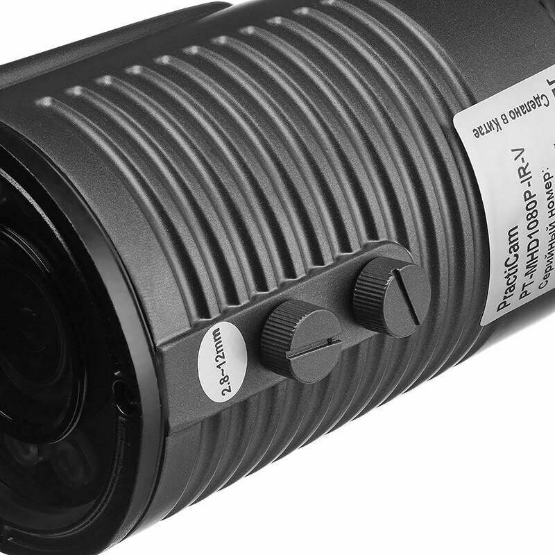 Видеокамера PRACTICAM PT-MHD1080P-IR-V 1/2,7” сенсор; видеостандарты AHD, 960H, HD-TVI, HD-CVI; объектив 2,8-12 мм (90-24°); 0.03Лк F1.2; ИК 40м интересное: