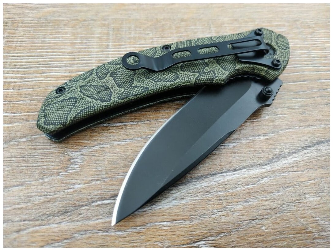 Нож складной STINGER FK-019SAK-CA зеленый камуфляж