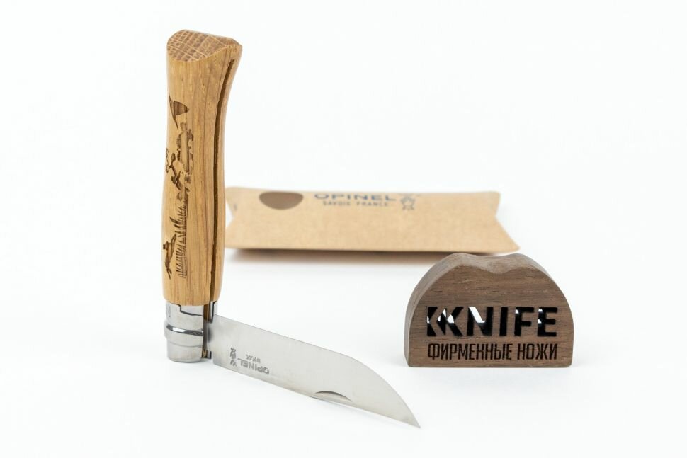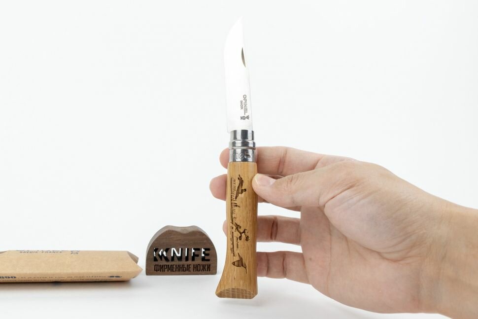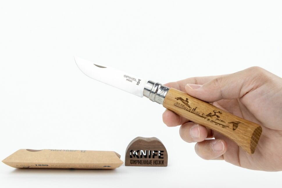 Нож Opinel №8, нержавеющая сталь, рукоять дуб, гравировка заяц