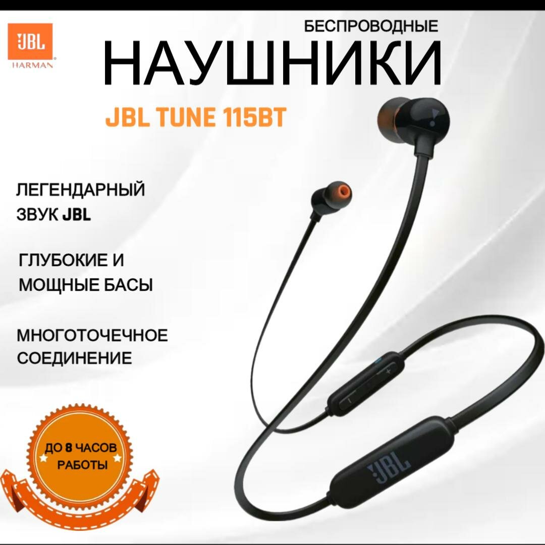 Гарнитура вкладыши JBL T115BT BLK черный беспроводные bluetooth - 1 шт.