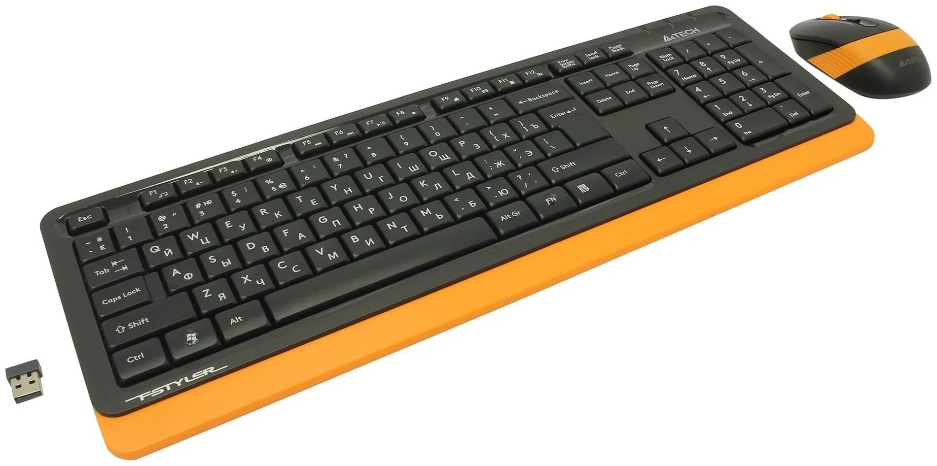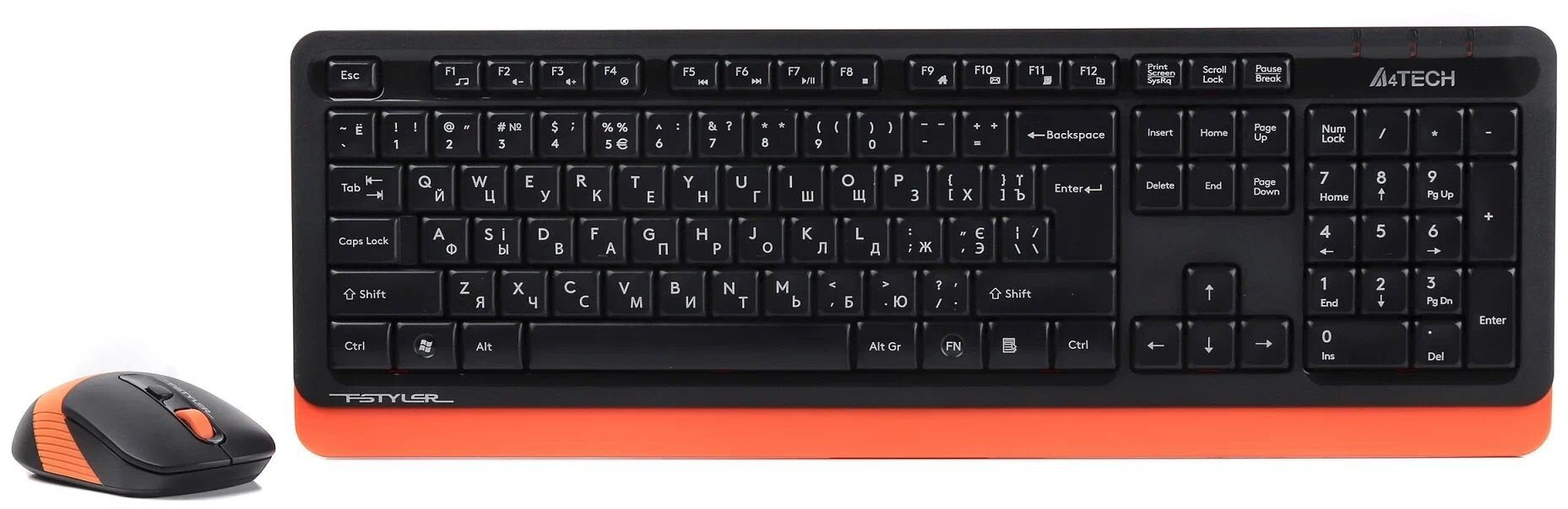 Клавиатура + мышь A4Tech Fstyler FG1010, беспроводная, USB, черный/оранжевый
