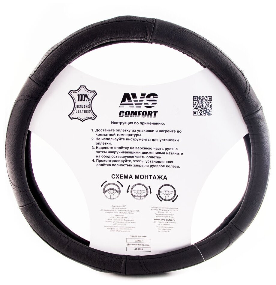 Оплетка на руль M "AVS" натуральная кожа, черный (GL-920M-B) AVS A78674S