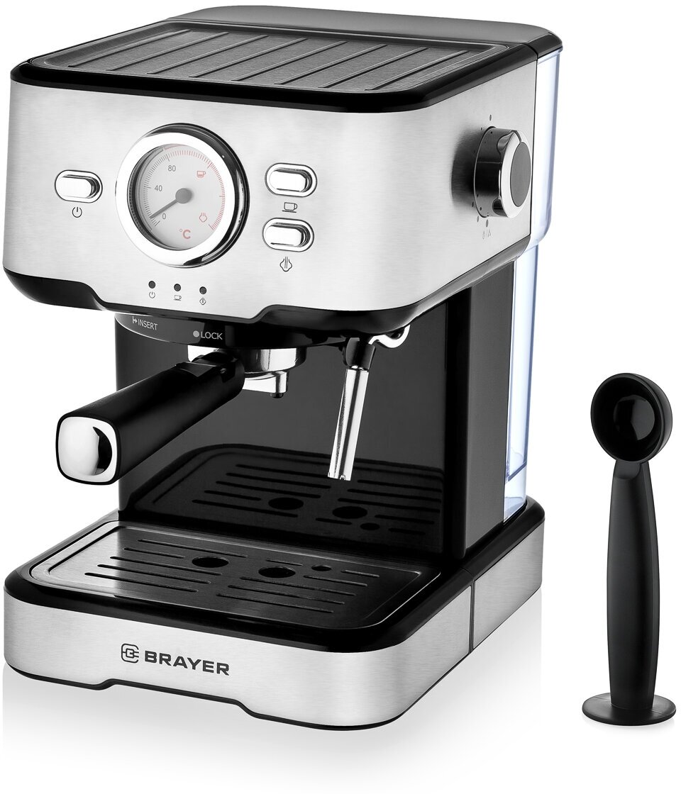 BRAYER Кофеварка BRAYER BR1101, рожковая, 1500 Вт, 1.5 л, капучинатор, серебристая