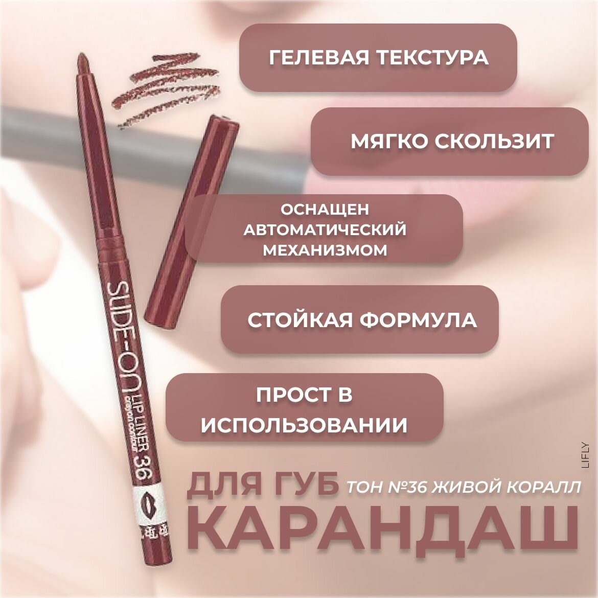 для губ автоматический Slide-On Lip Liner 36 живой коралл