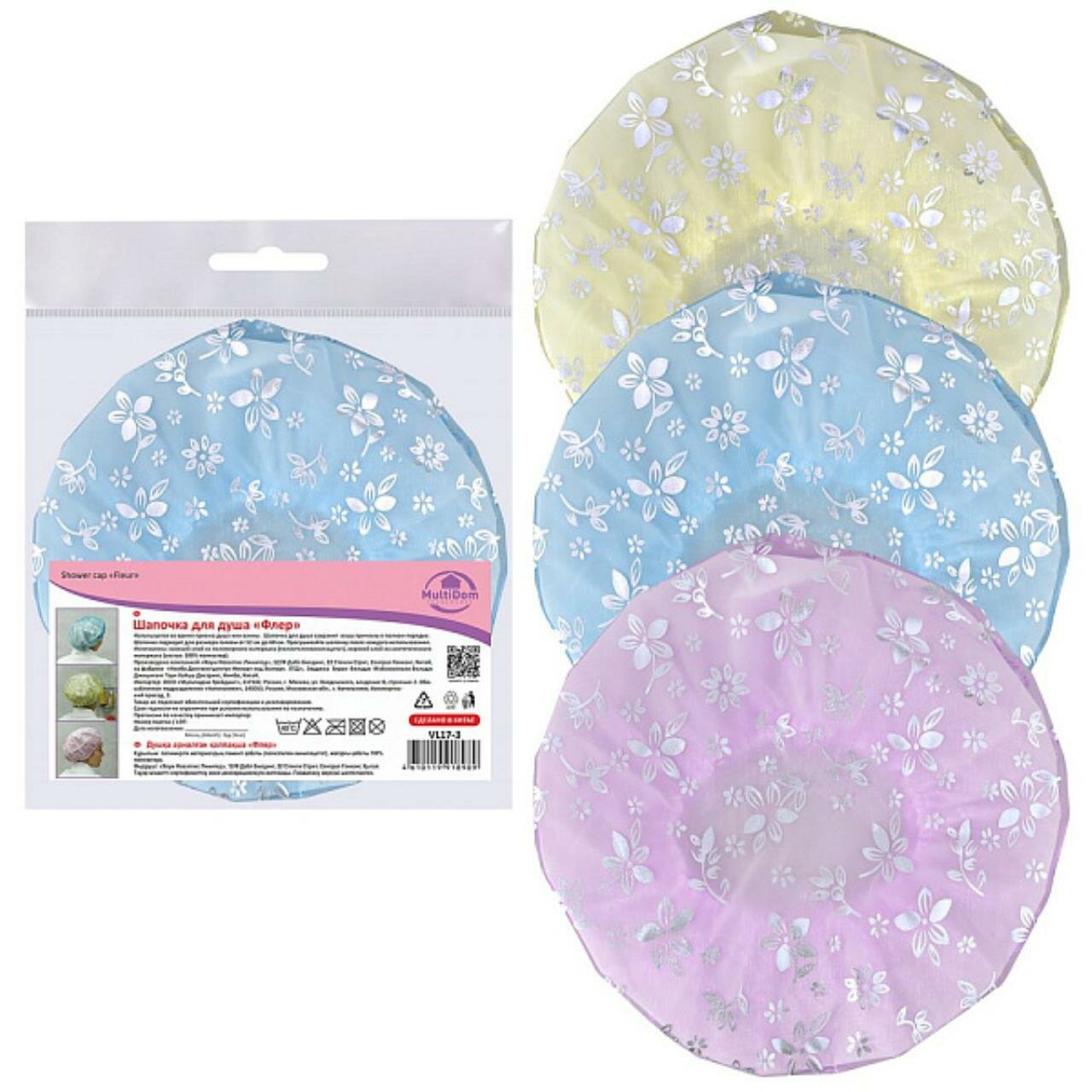 Шапочка для душа "Флер". Размер 52~60 см. 3диз 3цв