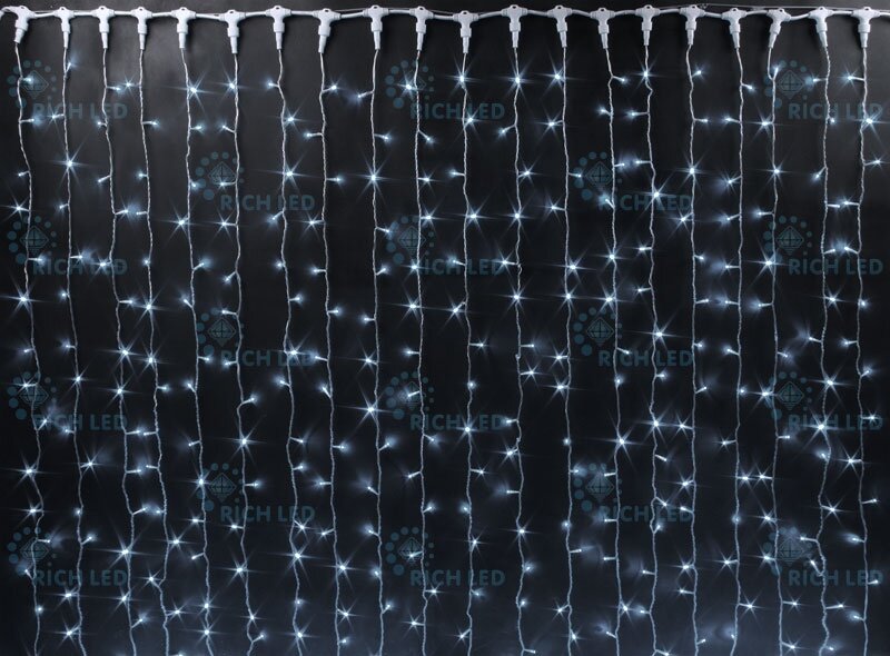 Свет Rich LED Гирлянда светодиодная Занавес белая с мерцанием 220B, 1500 LED, провод белый, IP65 RL-C2*9F-CW/W
