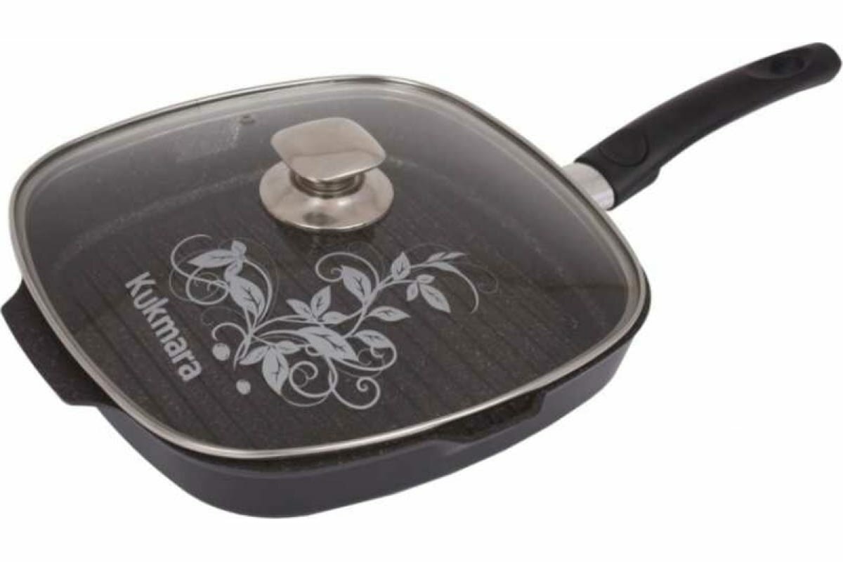 Сковорода-гриль с антипригарным покрытием со съемной ручкой, стеклянной крышкой Kukmara (Granit Ultra Original) сгкго262а, 26х26 см