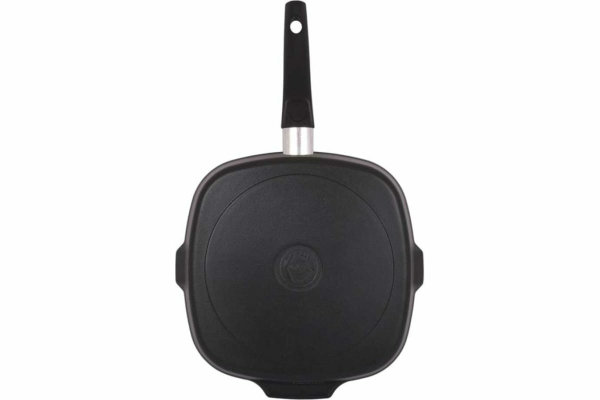 KUKMARA Сковорода-гриль квадратная Granit ultra, 28×28 см , съёмная ручка, стеклянная крышка, антипригарное покрытие, цвет чёрный