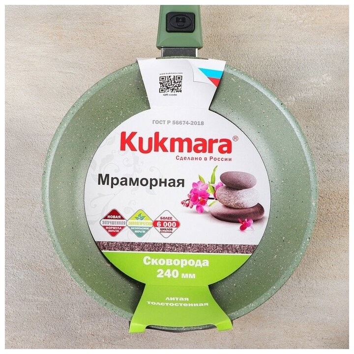 Купить Kukmara Сковорода 240/60мм со съемной ручкой soft touch, АП (фисташковый мрамор), смф247а .