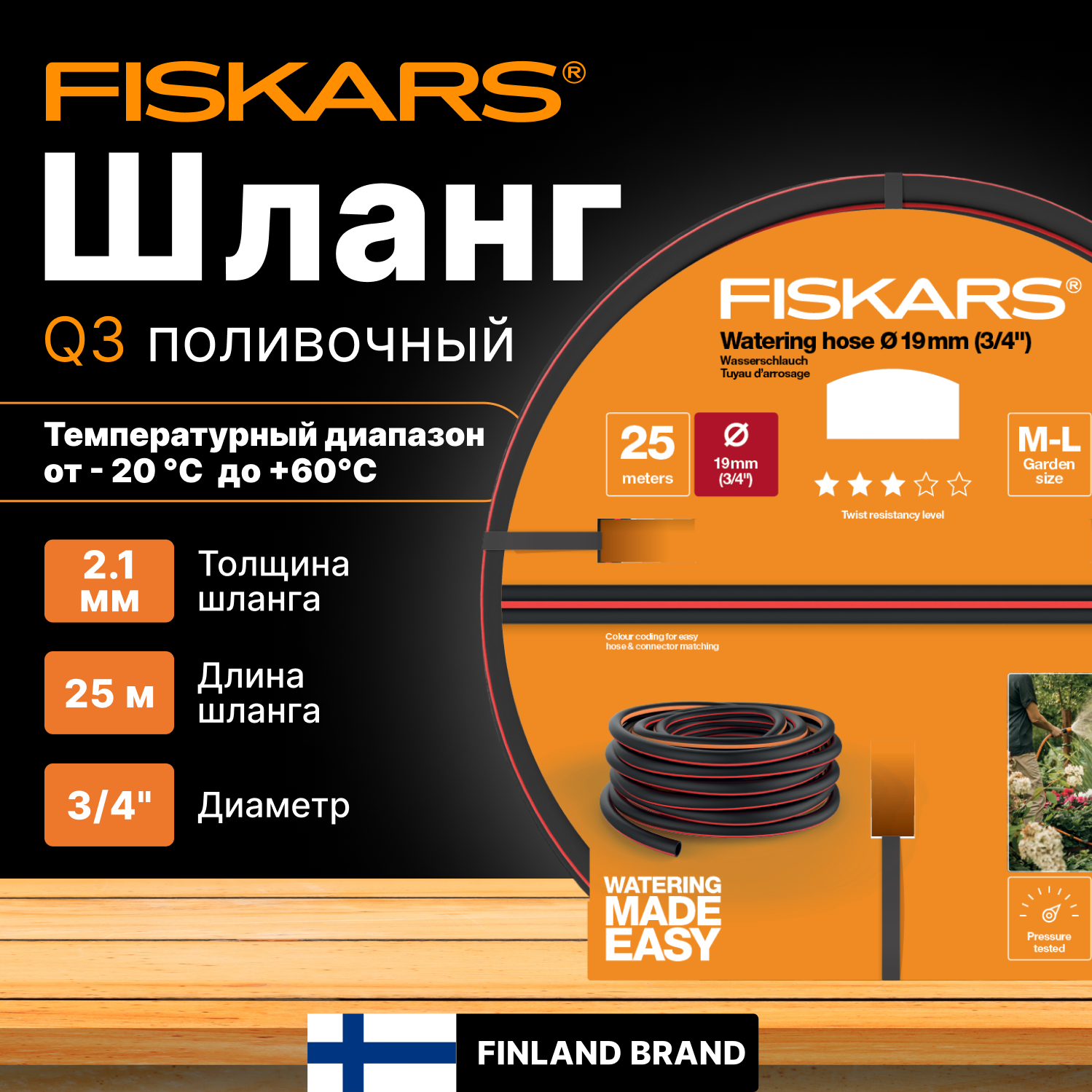 Купить Шланг FISKARS Q3, 3/4" (19 мм), 25 м