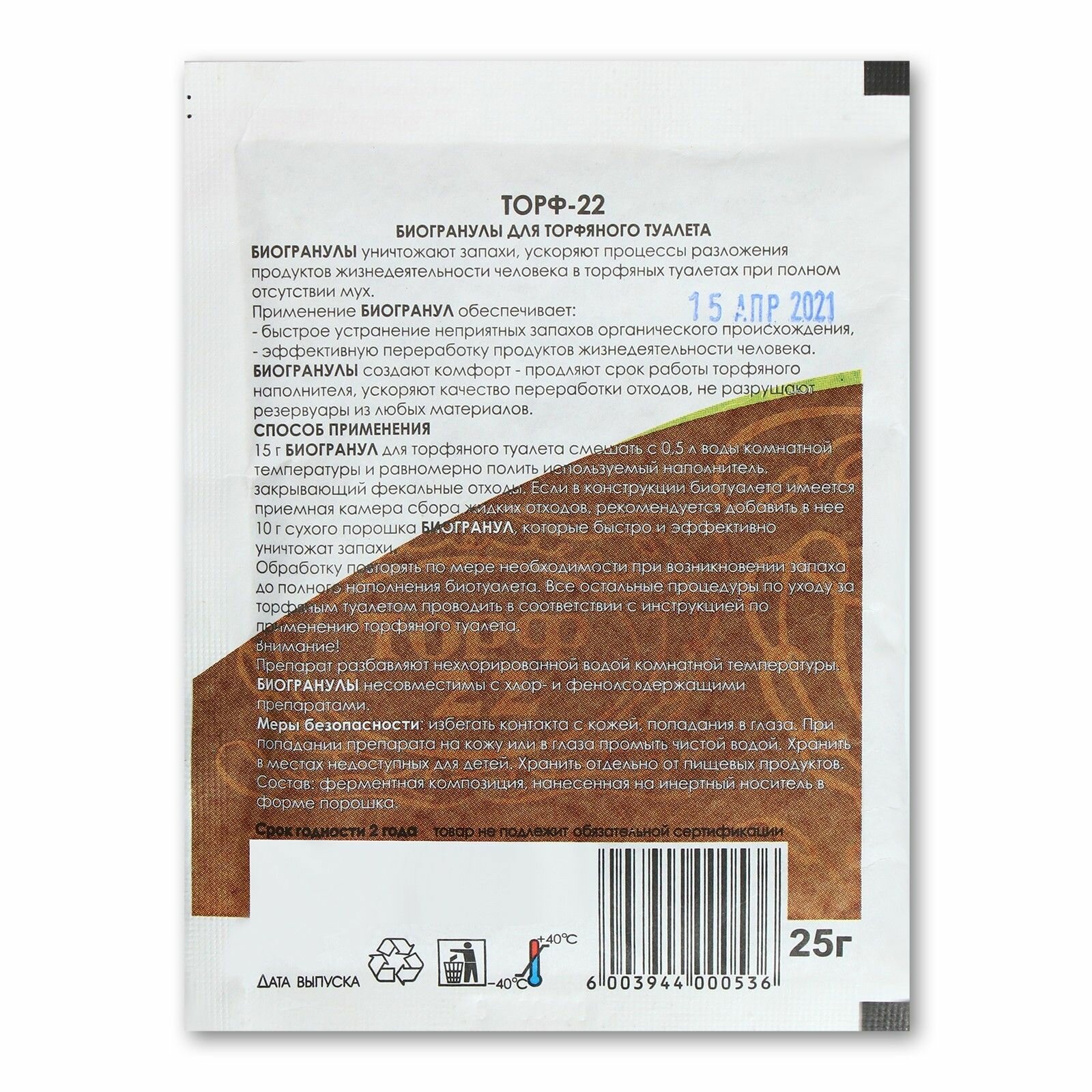Биогранулы для торфяного туалета, 25 г
