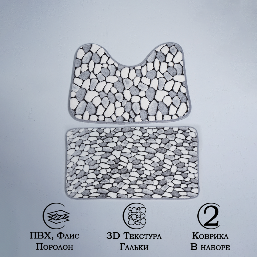 Набор ковриков для ванной и туалета Доляна "Галька", 2 шт, 45х50, 50х80 см (851410)