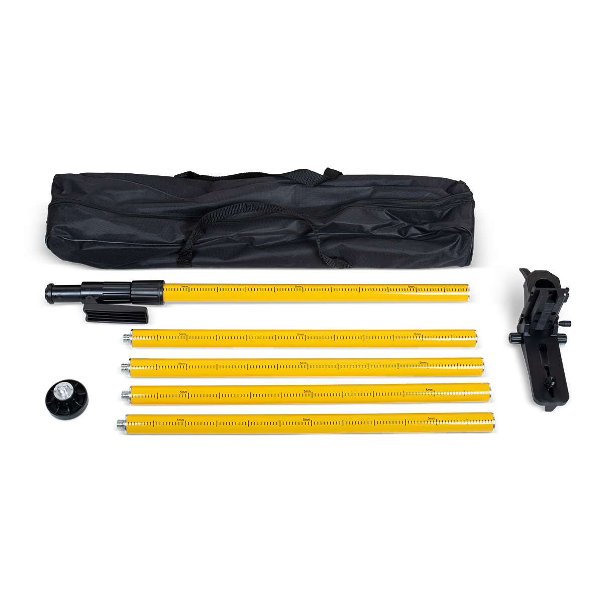 | Плюсы: | Перемещение лазерного уровня по всей длине штанги без препятствий в отличии от телескопической штанги. |
