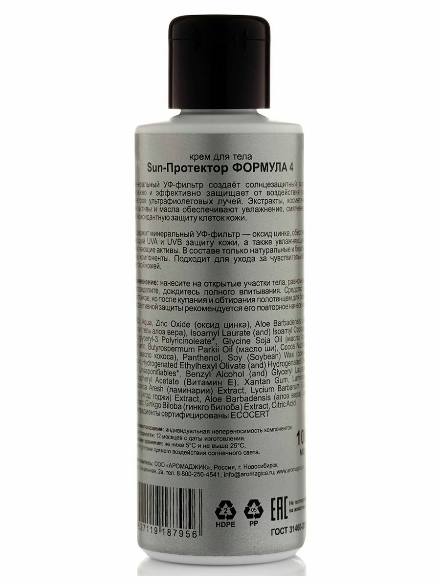 Солнцезащитный крем для тела "Формула №4 Sun-протектор", SPF 30 ChocoLatte 100 мл