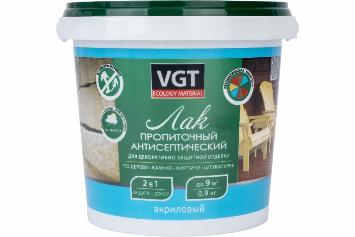 Лак акриловый пропиточный с антисептиком "бесцветный" VGT 0,9кг