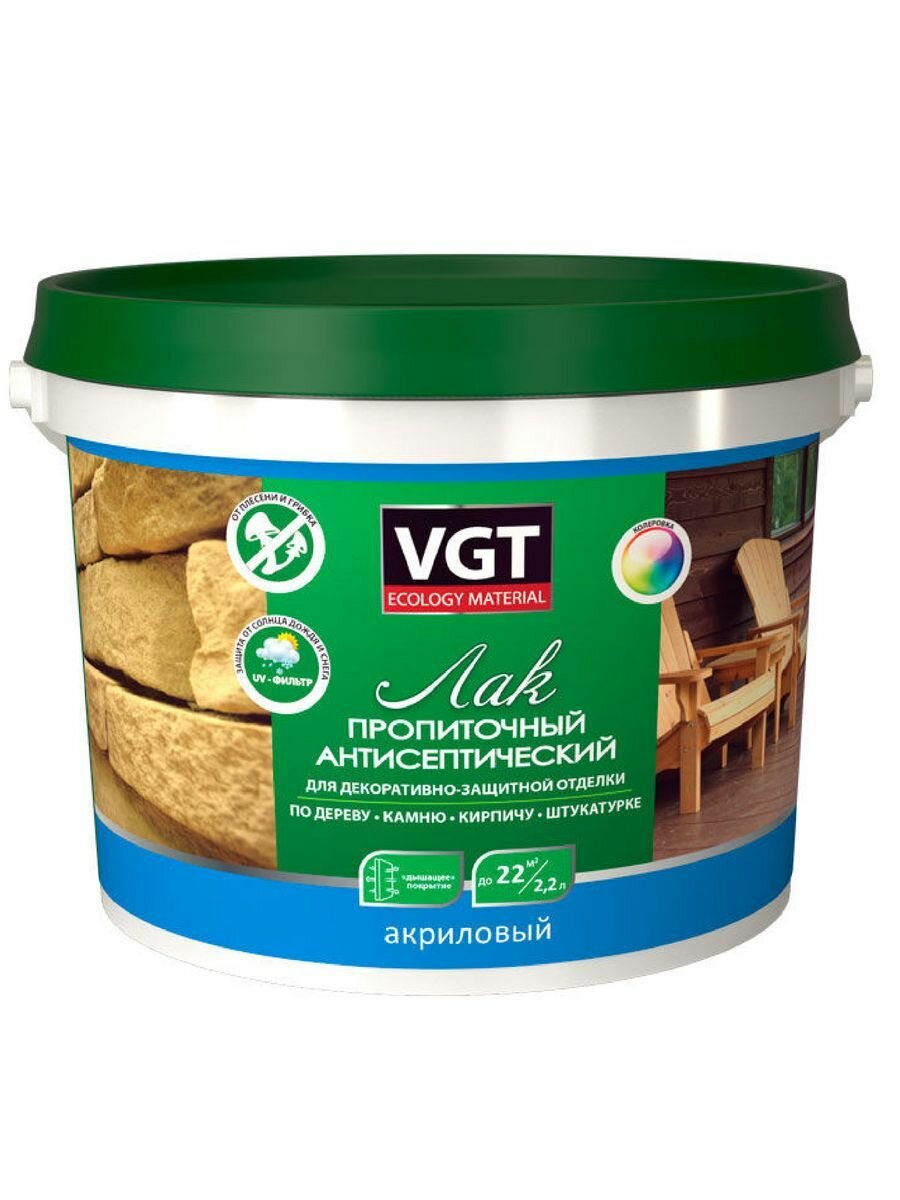 Лак пропиточный с антисептиком для дерева и камня Vgt , акриловый, 2,2 кг, сосна