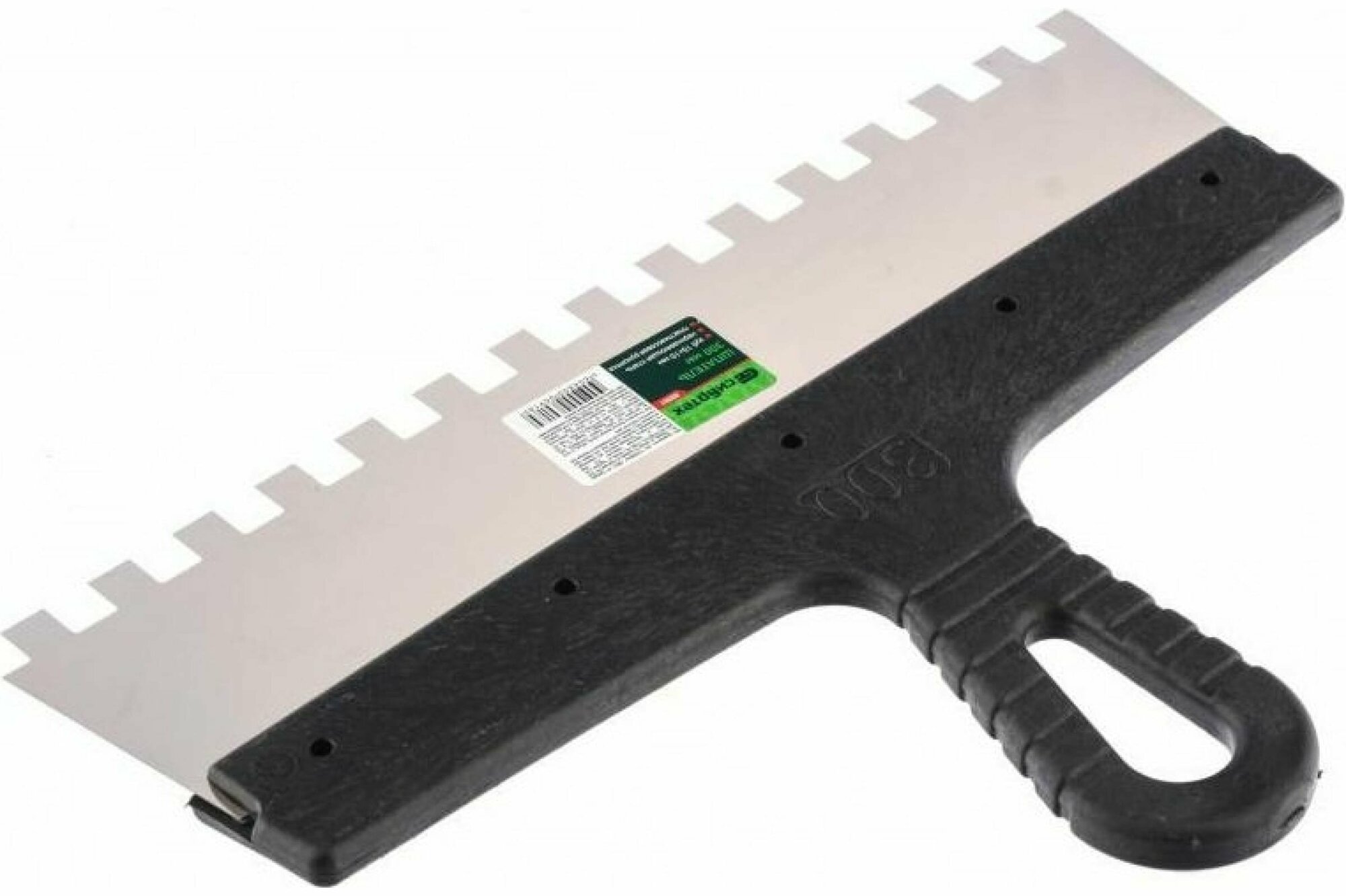 Купить Шпатель из нержавеющей стали, 300 мм, зуб 10 х 10 мм, пластмассовая ручка Сибртех