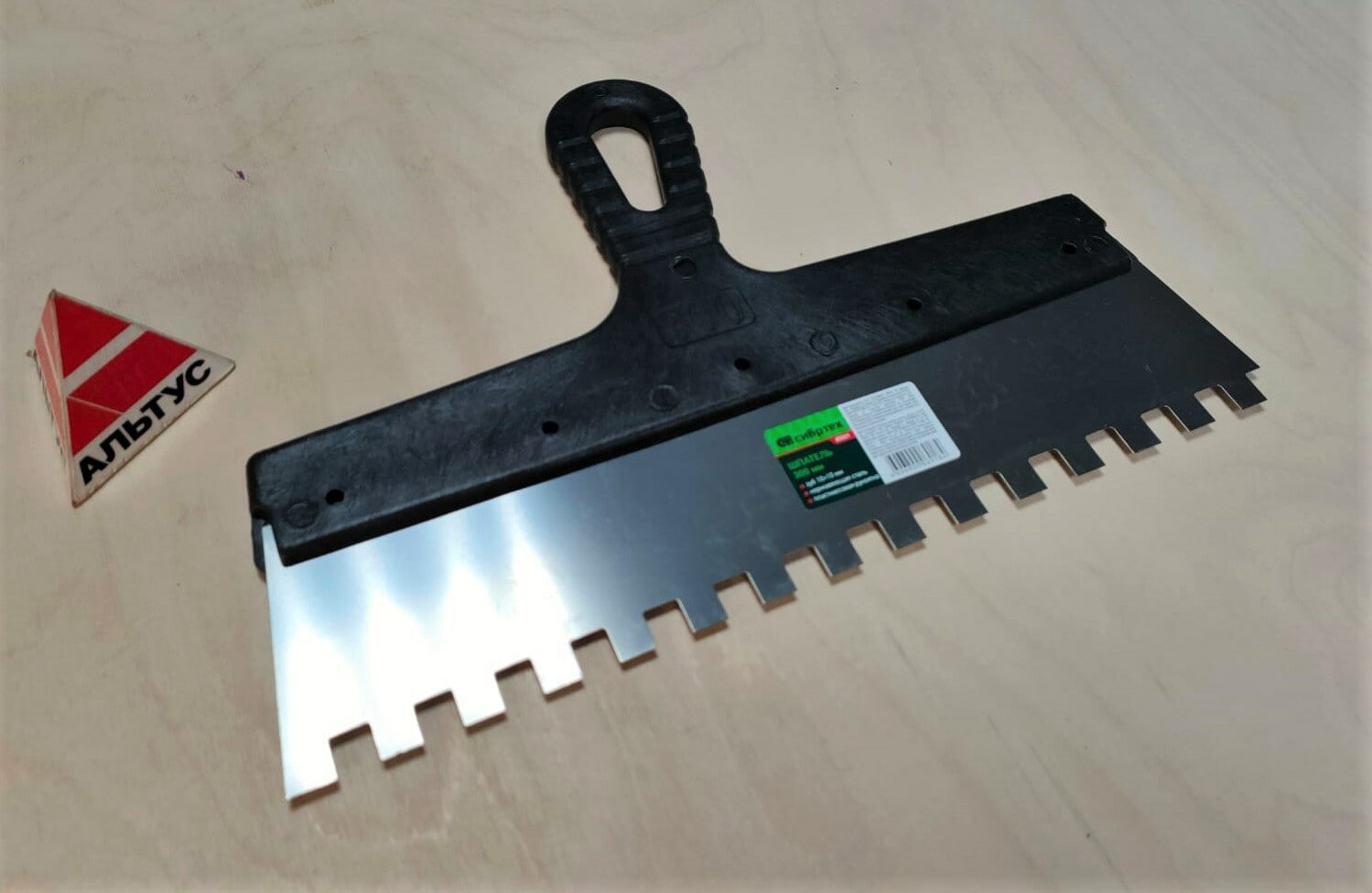 Зубчатый шпатель СИБРТЕХ 85501 : 300мм зуб 10х10 мм
