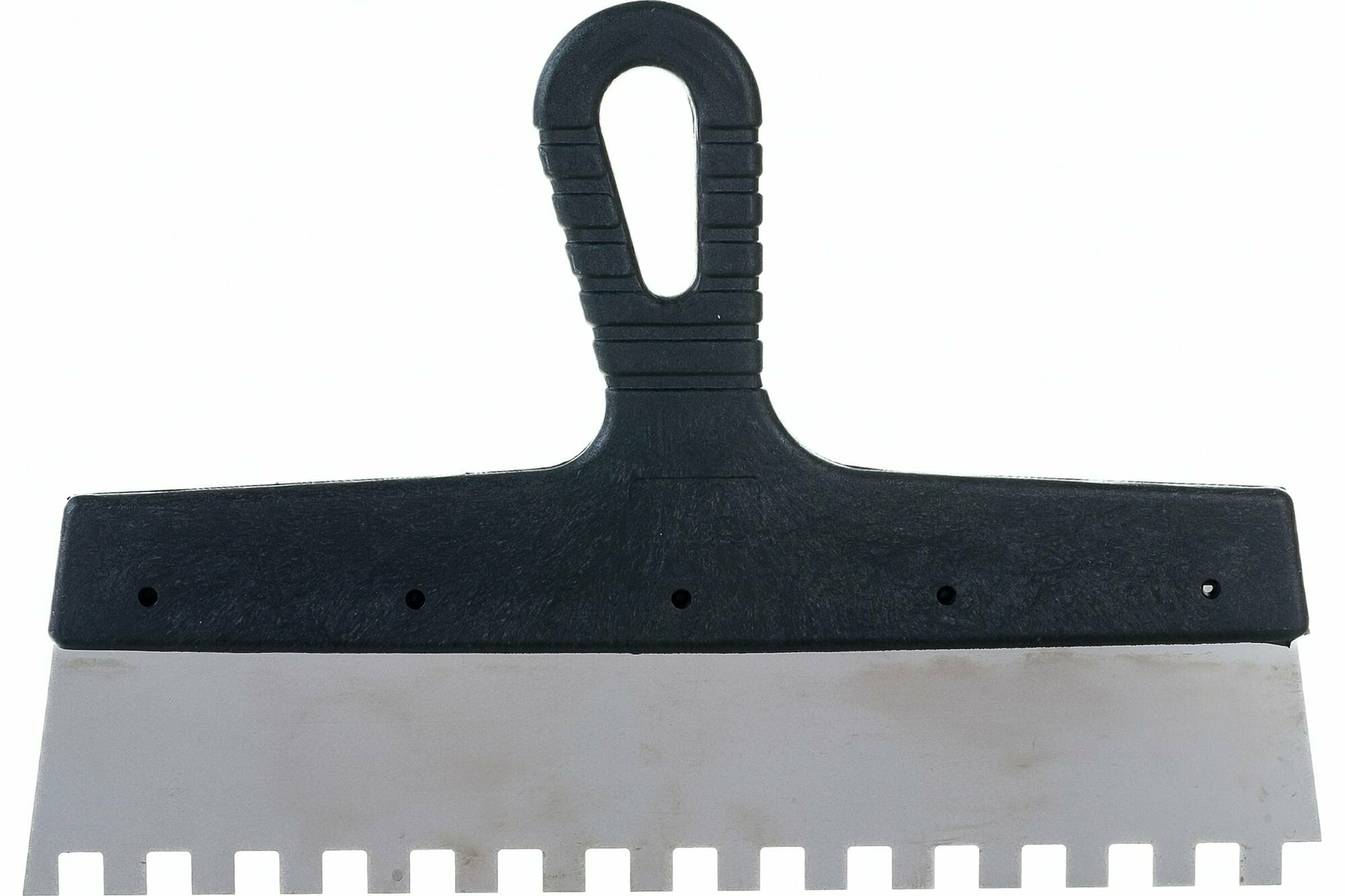 Шпатель из нержавеющей стали, 300 мм, зуб 10х10 мм, пластмассовая ручка// Сибртех 85501 .