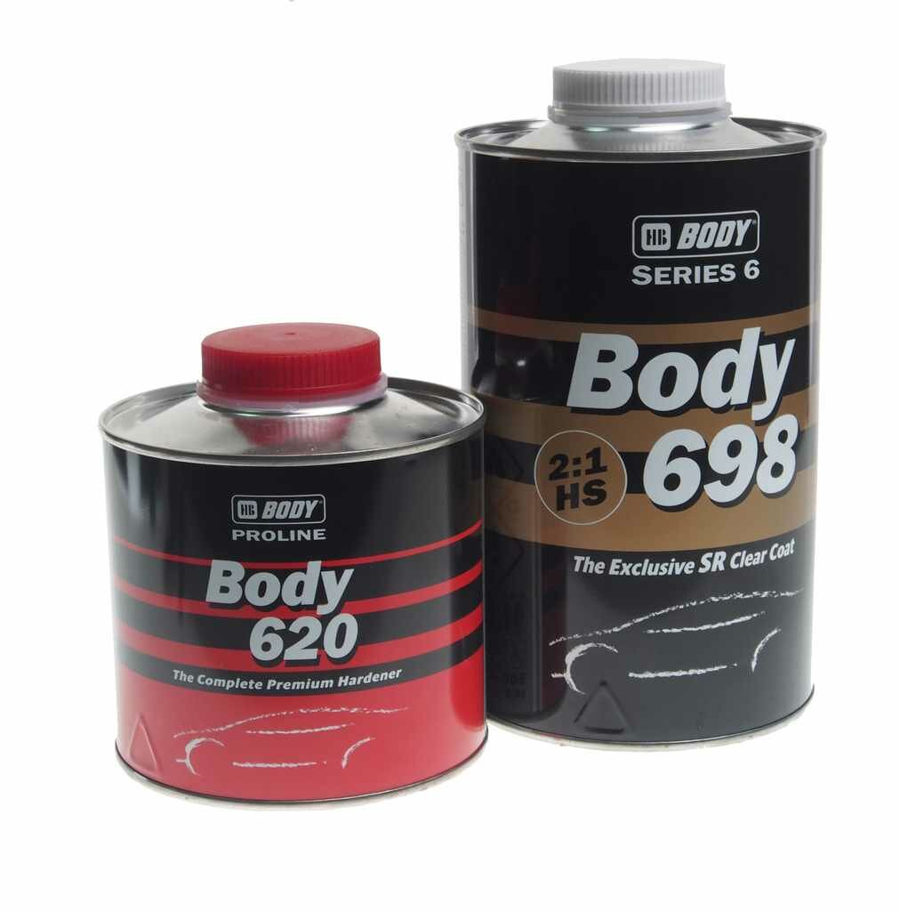 Лак автомобильный 2К акриловый глянцевый HS (комплект) HB BODY 698 HS 2:1 1 л + Отвердитель BODY 620 0,5 л / прозрачный, с отвердителем