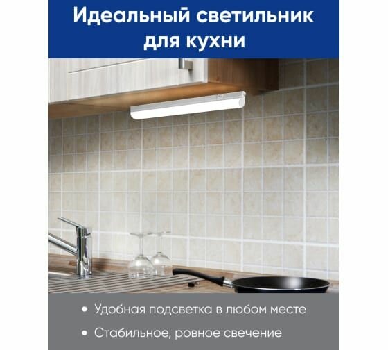 Был на кухне подобный светильник, люминисцентный =13W (сгорел) Приобретенный светильник светодиодный =7W По яркости освещения разницы не заметил (значит более экономный) Монтаж - без проблем (использую под навесным шкафом над мойкой), пришлось использовать держатели из комплекта, но использовал посадочные отверстия от старого светильника (два шурупа с дюбелями остались в заначке))). В комплекте два разветвителя, один - пластиковая фишка, позволяет два светильника соединить в ряд (без "пробелов")), другой гибкий =15см (пригодится, если надо два светильника соединить в углу над мойкой или под угловым навесным шкафом) Короткий сетевой шнур придется удлинять. Про "цена-качество" - оценим, когда сгорит. |