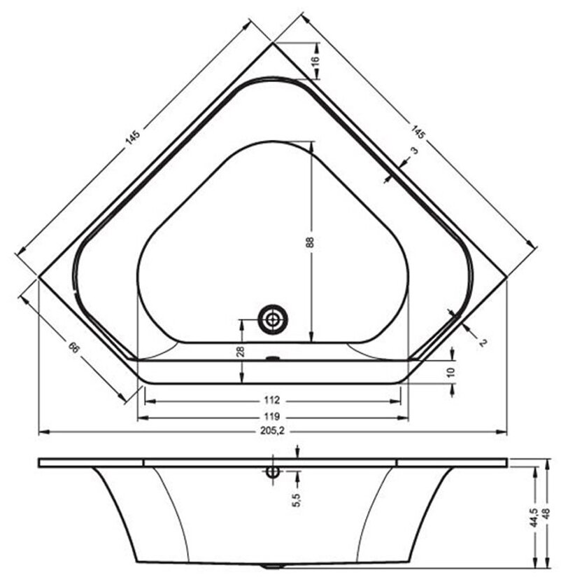 Акриловая ванна 145х145 см Riho Austin B005001005