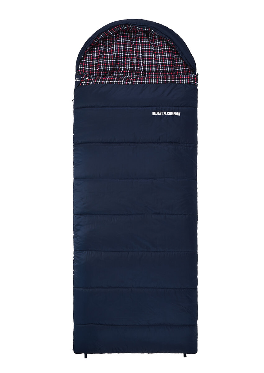 Спальный мешок TREK PLANET Belfast XL Comfort, широкий с фланелью, левая молния, цвет: синий
