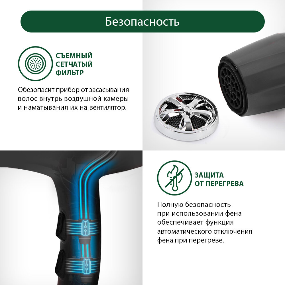 | Плюсы: | Очень мощный фен, сушит быстро, недорогой. |