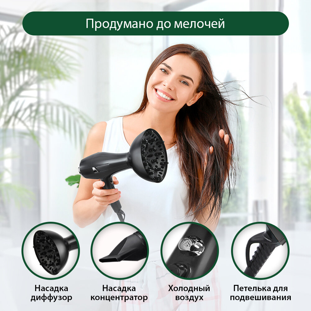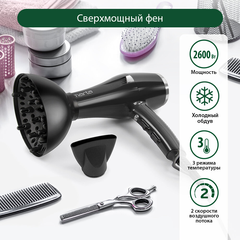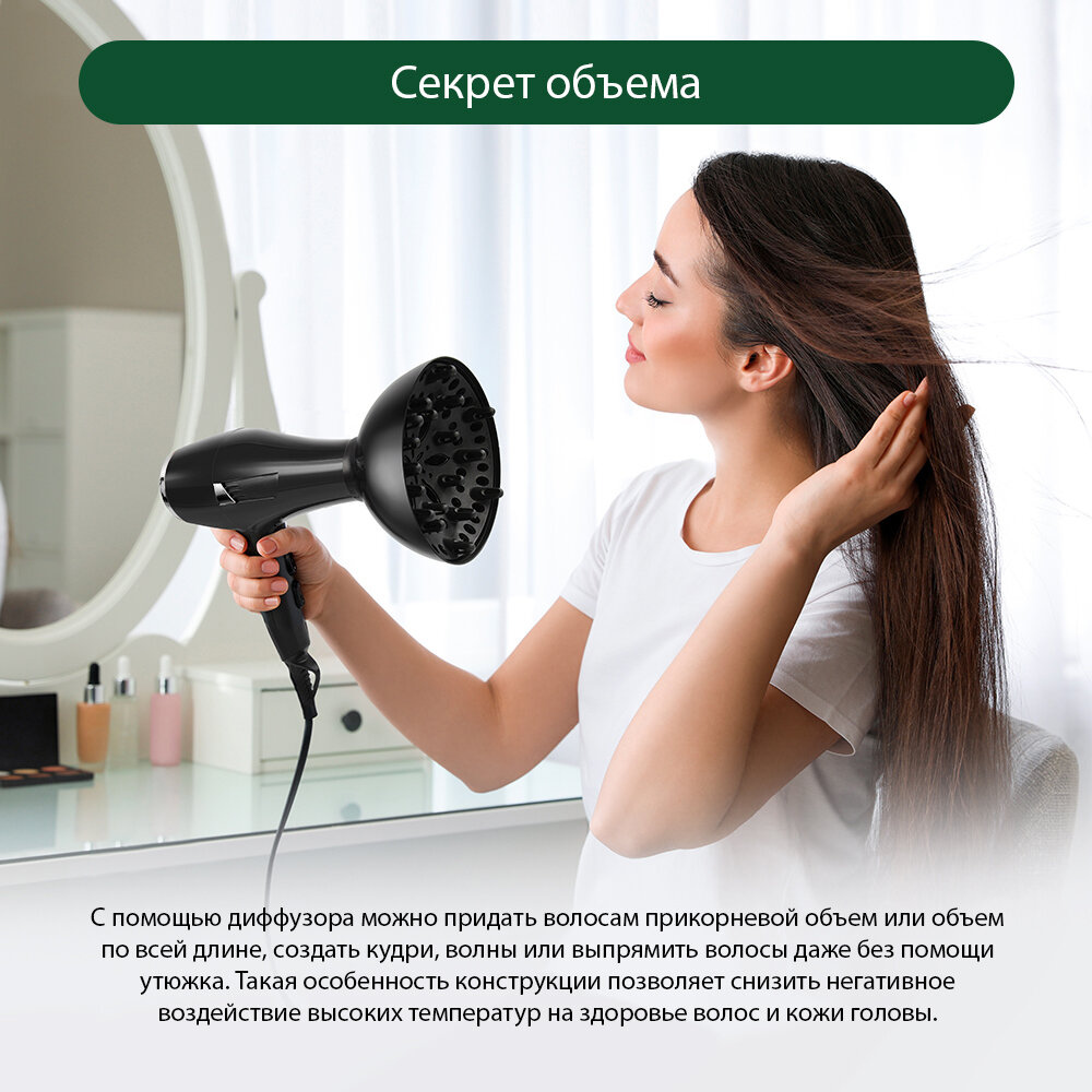 | Плюсы: | Мощный фен. Хороший большой диффузор.