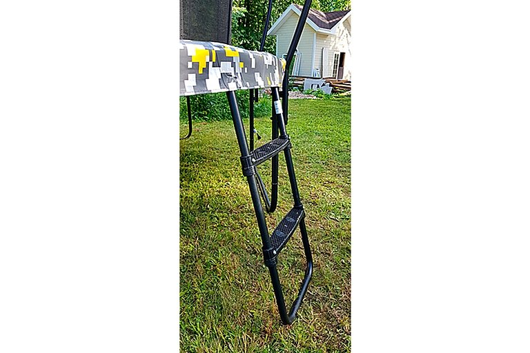 По материалу могу сказать, что он прошел проверку временем – целых два года под палящим солнцем, мой вердикт – устойчив к ультрафиолетовым лучам. Лесенка полезный девайс – удобно залезать на батут, лишь по фото на сайте кажется, что она вам не пригодится. Недостатков не обнаружили. |