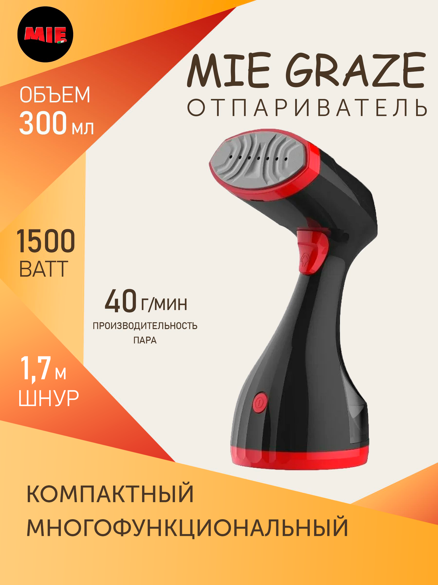Отпариватель ручной MIE Graze NEW черно-оранжевый