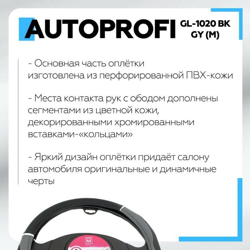 Купить AUTOPROFI GL1020BKGYM GL-1020 BK/GY (M)_оплетка руля! гелевый наполнитель, экокожа+ ПВХ, вставки с тиснен, чёрн./серый\