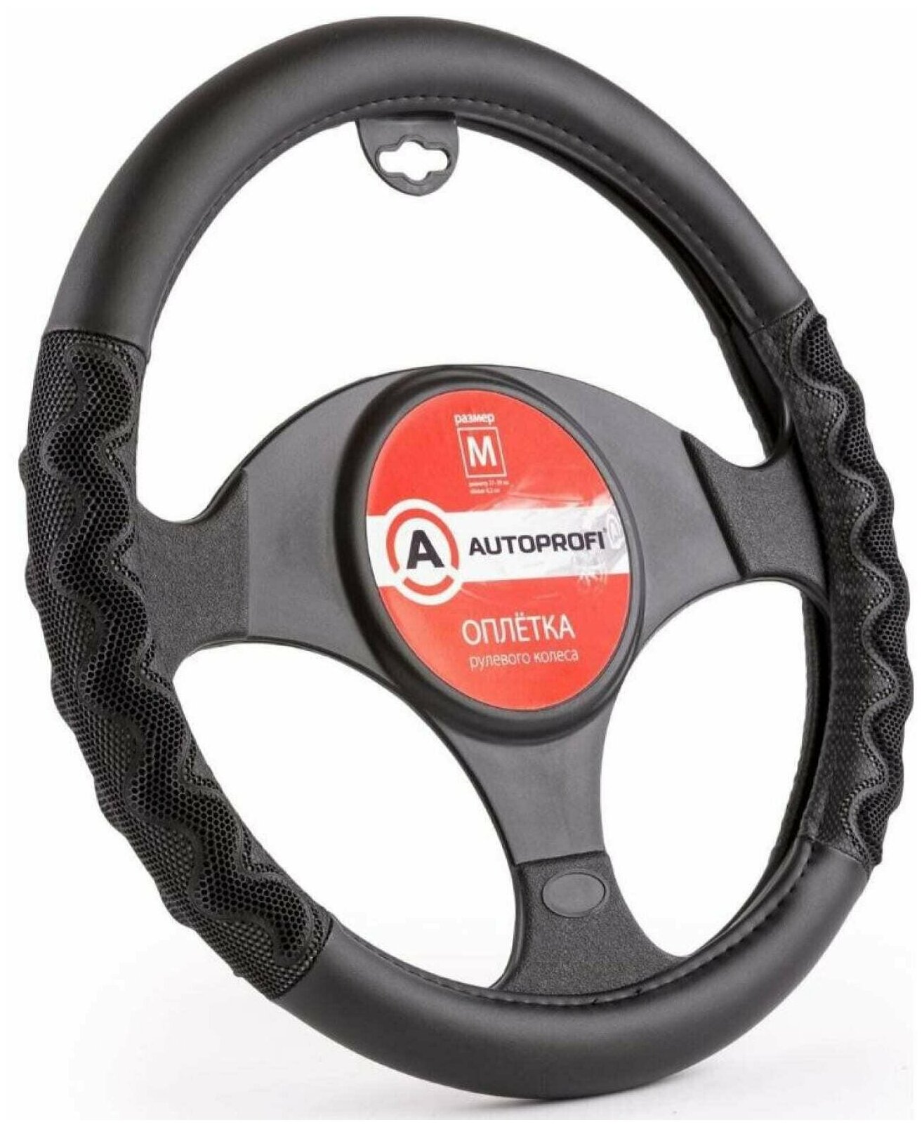 Оплётка руля Autoprofi , экокожа, объмные вставки, чёрный/серый, размер М