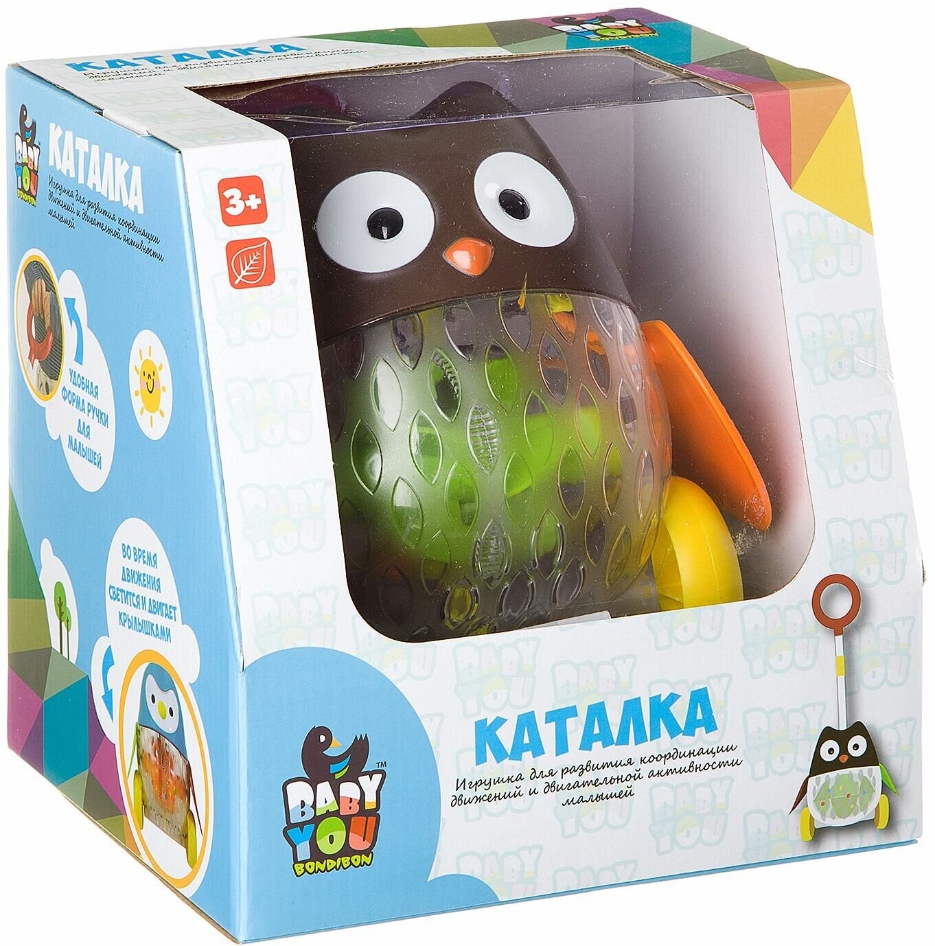 Игрушка пластмассовая каталка с ручкой сова, (светится) Bondibon (ВВ2381)
